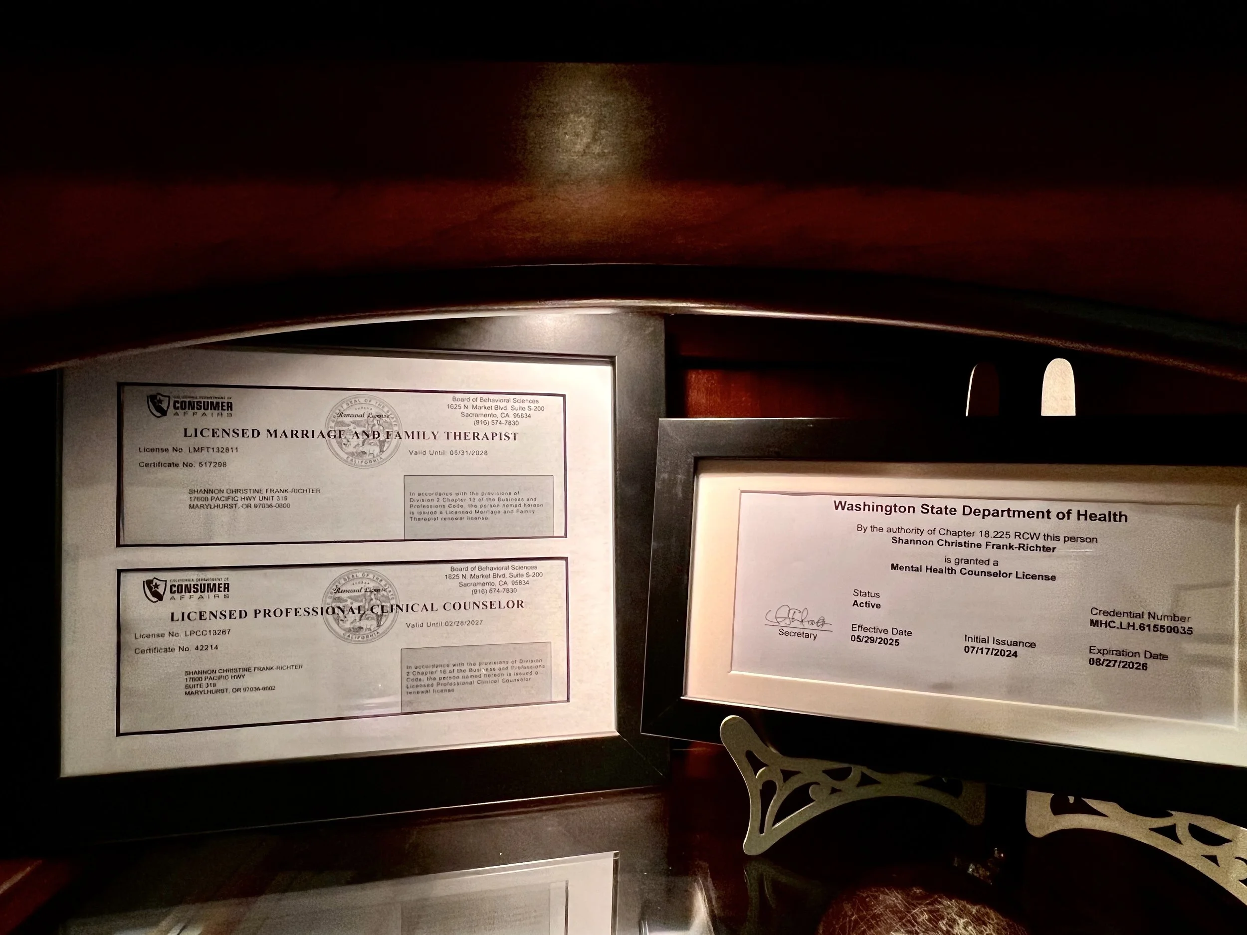 CA LMFT 132811 & CA LPCC 13267 & WA LMHC 61550035